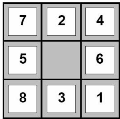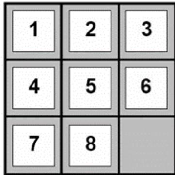 ◼ 一个木块相邻一个或两个其他木块跳入空格,耗散值(成本)为跳过的木块数;