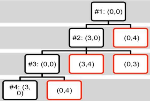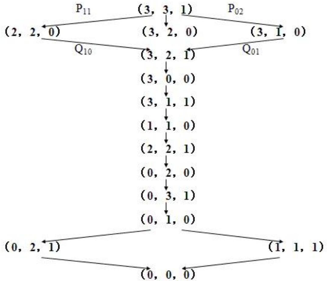 如果第一次选择状态时,选择从(3,1,0),以及倒数第二次选择状态(1,1,1),则会得到另外的不同路径(试一试)