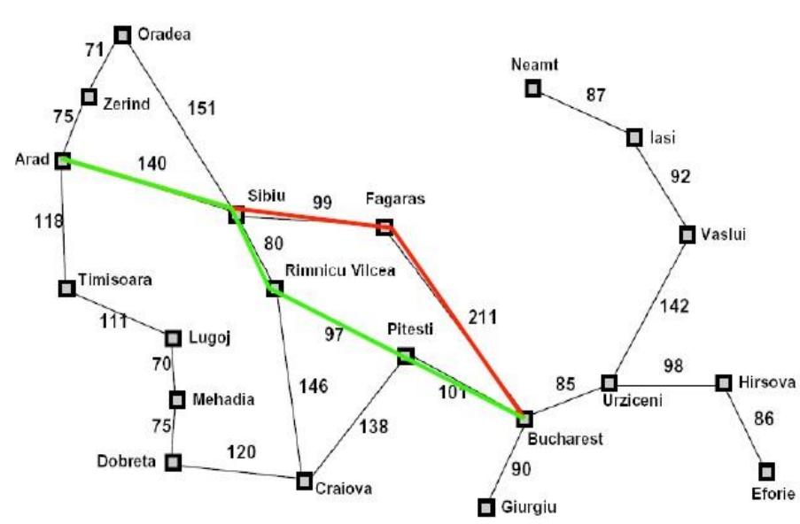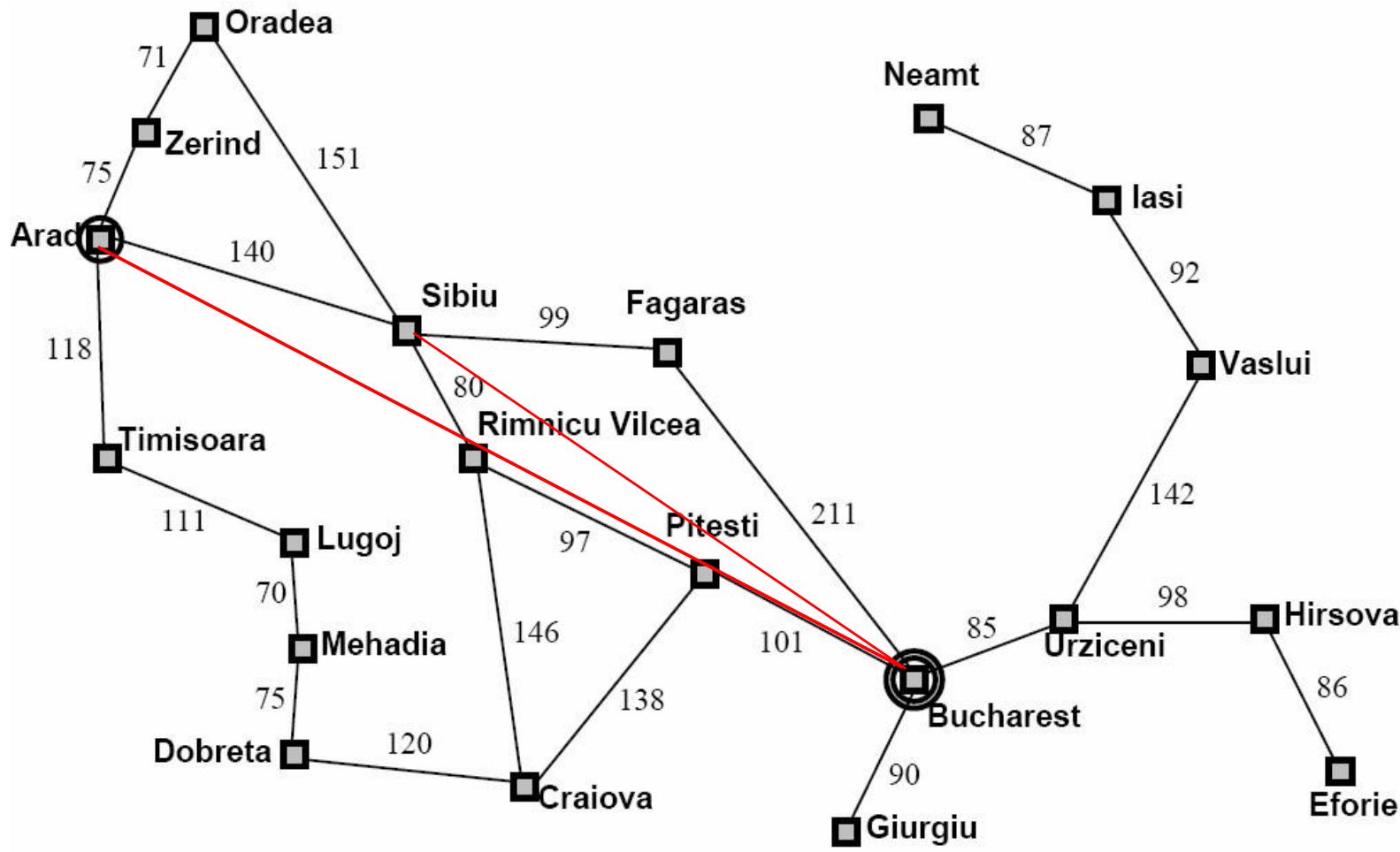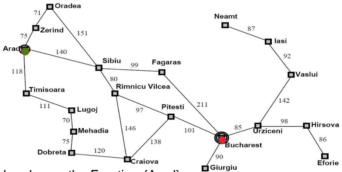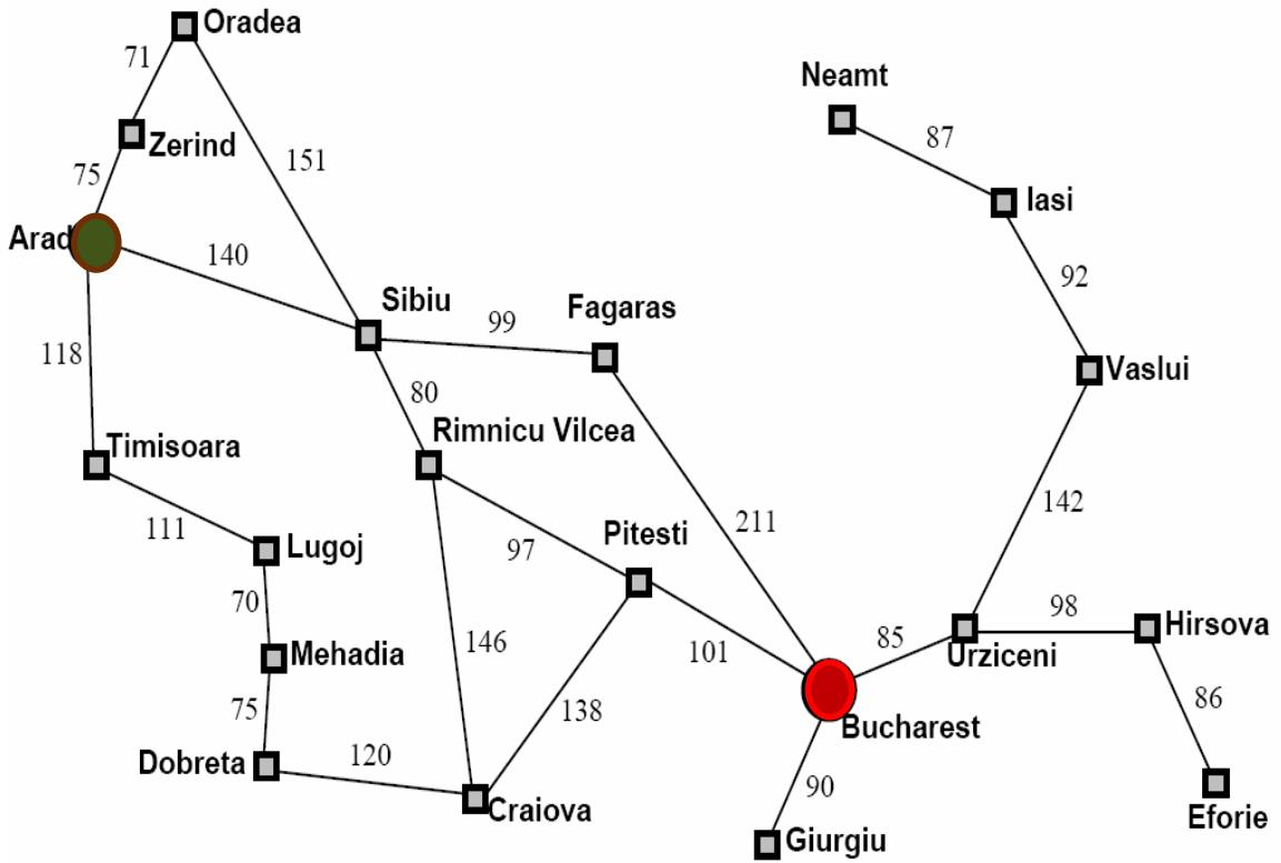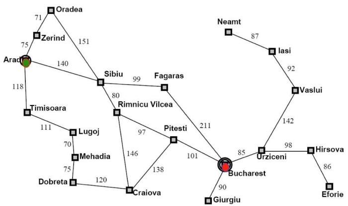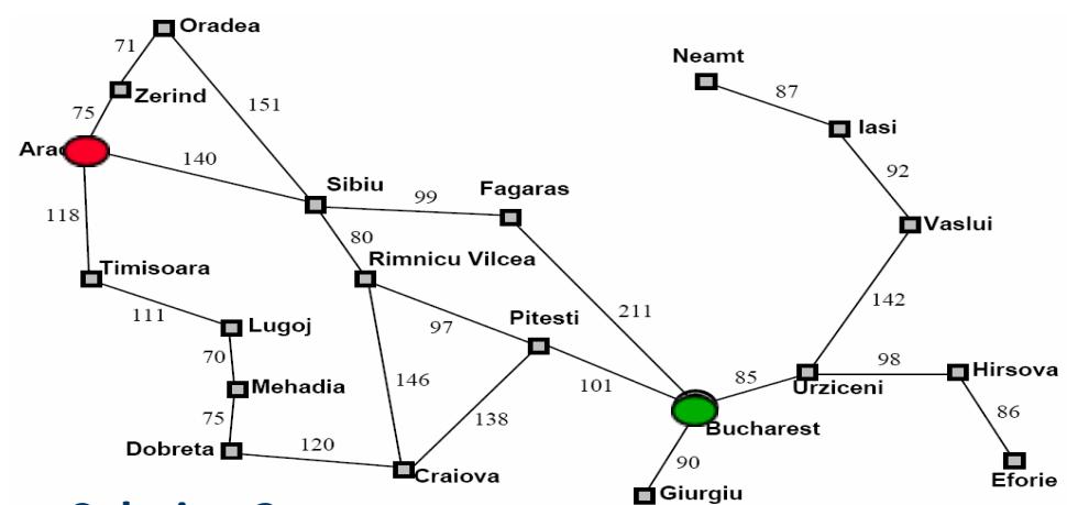 问题的解:旅行路线,即从Arad到Bucharest途径城市组成的序列