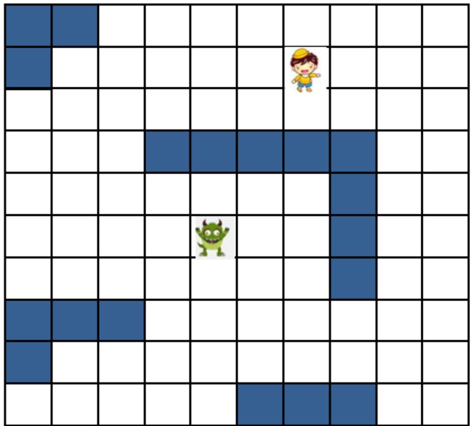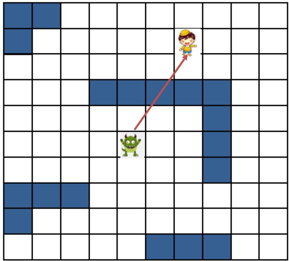 – 两点之间直线最短, 因此可以 设计启发函数为:怪物当前坐 标与小孩目标坐标的直线距离。