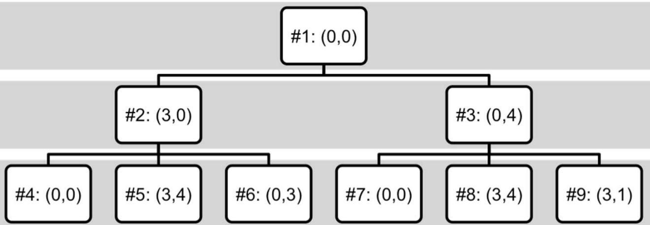 | 4 | [(4,3), 45+10] | [(5,3), 55 + 0], [(4,4), 55 +15], [(4,2), 55 + 15], [(5,4), 60 +10], [(5,5), 60 + 10] | [(1,2), (2,3), (3,4), (4,3)] | 右 |