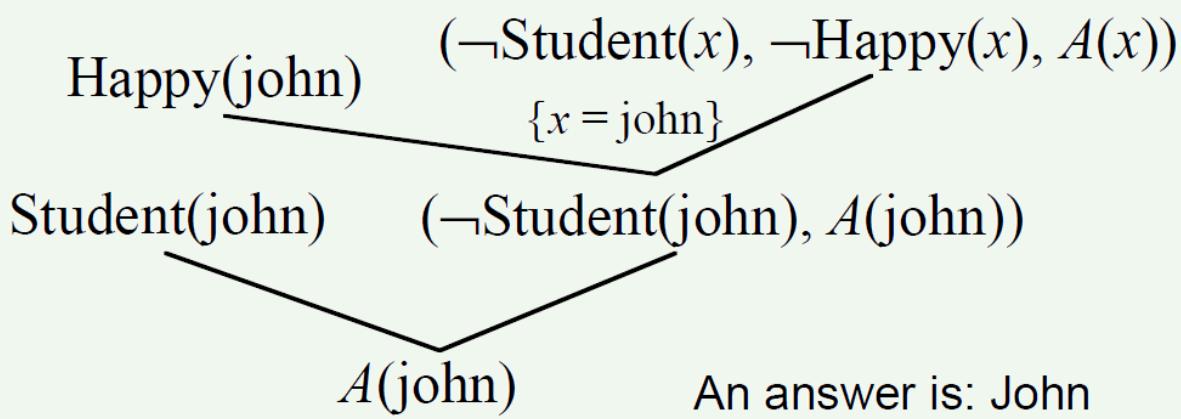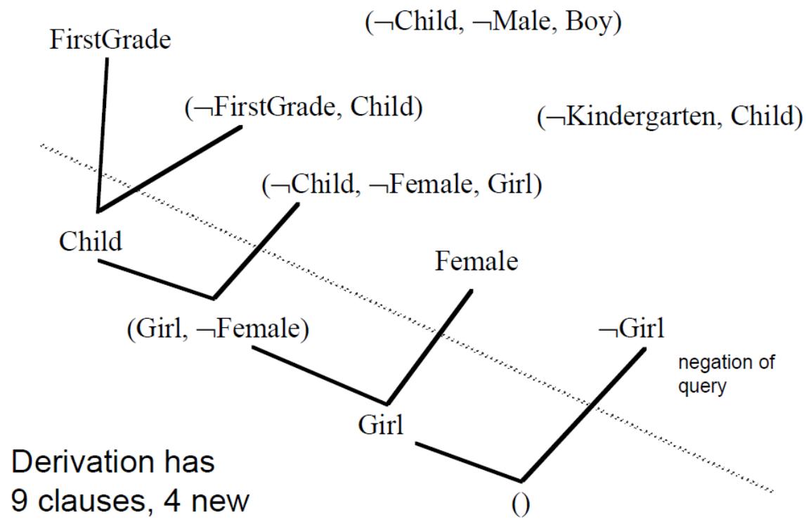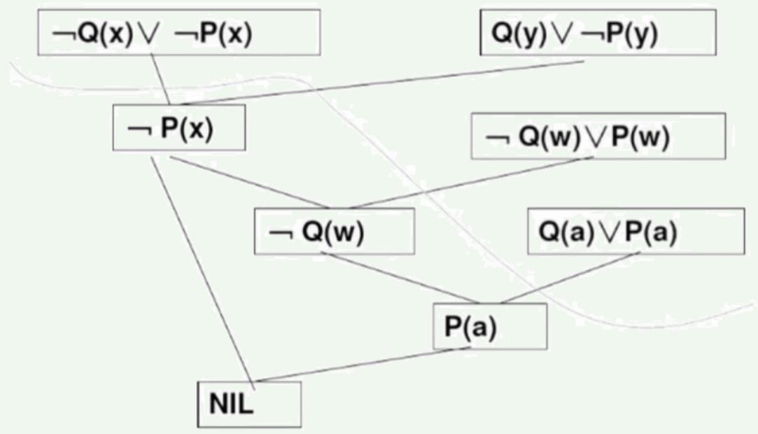 上述归结过程如右图归结树所示。