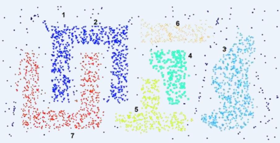 6 density-based clusters