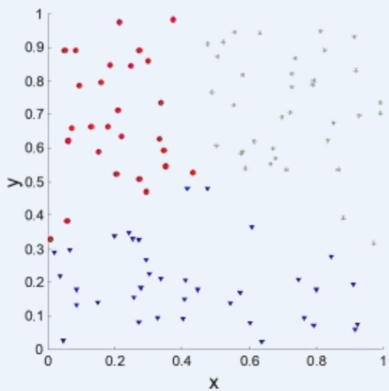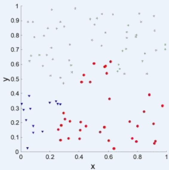 Determining the clustering tendency聚类趋势 of a set of data, i.e.,distinguishing whether non-random structure actually exists in the data先看看是不是真的有簇结构存在