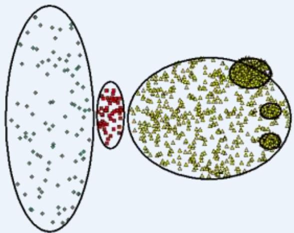 ➢ Cluster of widely different sizes, shapes, and densities