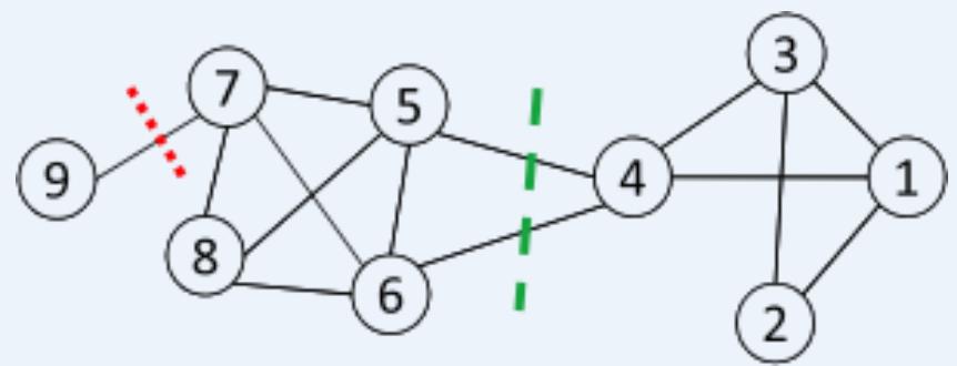 Cluster separation is the sum of the weights between nodes in thecluster and nodes outside the cluster.