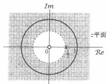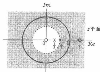 图10.3 当 时,例10.2的零-极点图和收敛域