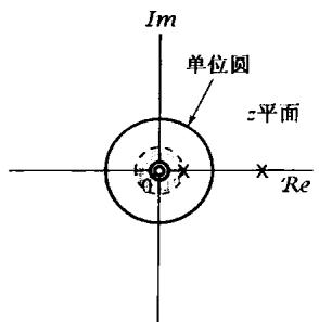仅有两个极点,均在单位圆内。