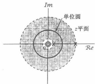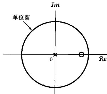 图10.9 当 和 时,例10.6的零-极点图。这个例子的收敛域除 外,由全部 值所组成