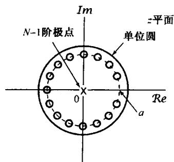 证明: 有一个极点(在单位圆里)和一个零点(在单位圆外)。