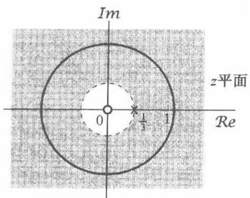 当 的值位于0和1之间时,该例的零-极点图和收敛域如图10.3所示。