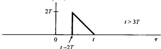 对于某个正的 的值,这两个信号如图2.8所示。为了计算这两个信号的卷积,将 分成5个不同的区间来考虑比较方便,如图2.9所示。