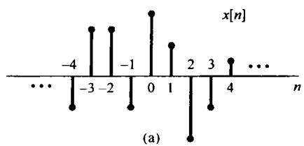 序列 和 作为 的函数画在图2.11(a)中,注意, 对于 是零,而 对于 是零。同时还能看到,无论 为何值,序列 沿 轴总是有非零的样本值。当 时 在 区间内有非零的样本值,于是对 就有