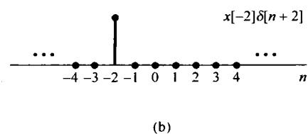 式(2.2)称为离散时间单位脉冲序列的筛选性质(sifting property)。因为序列 仅当 时为非零,所以在式(2.2)右边的和就把 序列进行了筛除,而仅保留下对应于 时的值。下面将利用离散时间信号这种表示来建立一个离散时间线性时不变系统的卷积和表示。