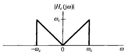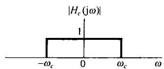 正如在第6章所讨论的,有各种不同的理由表明在实际中一般不用理想滤波器。在任何实际应用中,图7.4中的理想低通滤波器都用一个非理想滤波器 所代替,该 对于所关心的问题来说已足够准确地近似于所要求的频率特性,即 时 , 时 。显然。在这个低通滤波部分,任何这样的近似都会带来图7.4中 与 之间的某些差异,或者说 与 之间的某些差异。这样,考虑到特定应用中所能接受的失真程度,非理想滤波器的选择就很关键了。为了方便,同时也是为了强调诸如采样定理这样一些基本原理,本章和下一章都假定使用这些理想滤波器,但是要明白,在实际中就所讨论的问题来说,这样一个滤波器都必须被一个专门设计的,对理想特性足够近似的非理想滤波器所代替。