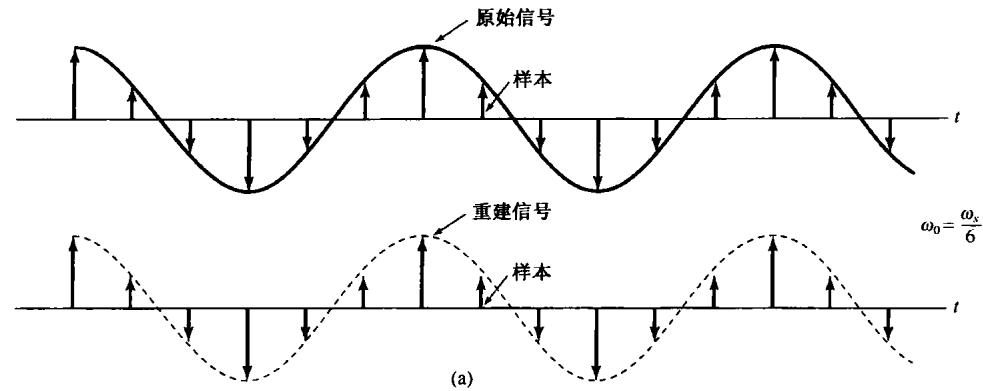 在一定条件下,一个连续时间信号完全可以用该信号在等时间间隔点上的值或样本(sample)来表示,并且可以用这些样本值把该信号全部恢复出来。这个略微令人吃惊的性质来自于采样定理(sampling theorem)。这一定理是极为重要和有用的。例如,电影就是由一组按时序的单个画面(一帧)所组成的,其中每一帧都代表着连续变化景象中的一个瞬时画面(也就是时间样本),当以足够快的速度来看这些时序样本时,我们就会感觉到原来连续活动景象的重现。又如印刷照片,一般是由很多非常细小的网点组成的,其中每一点就相应于空间连续图像的一个采样点,如果这些样点在空间距离上足够靠近,那么这幅照片看起来在空间还是连续的。当然,借助于放大镜,这些样点的不连续性还是可以看得见的。