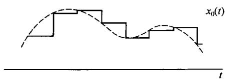 最容易利用冲激串采样来说明的采样定理确立了这样一个事实,即一个带限信号唯一地可以用它的样本来代表。实际上,产生和传输窄而幅度大的脉冲(这就很近似于冲激)都是相当困难的,因此以所谓零阶保持(zero-order hold)的方式来产生采样信号往往更方便些。在这样的系统中,在一个给定的瞬时对 采样并保持这一样本值,直到下一个样本被采到为止,如图7.5