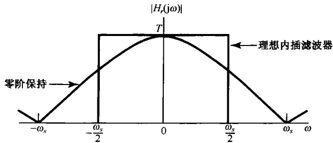 图7.11 零阶保持和理想内插滤波器的传输函数