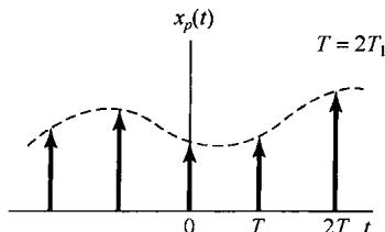 是一个周期性波形,其周期 ,由于 与一个冲激串相乘,因而只在 和 时的值 和 才有意义。