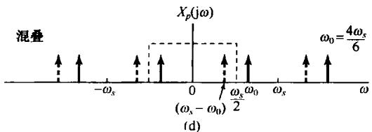 如果采样周期 取得大于(c)中所确定的值,将会发生频谱混叠。由于混叠的结果,感觉看到的将是一个较低频率的正弦波。