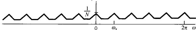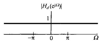 再次提及,实际上式(7.8)的频率响应也是不可能真正实现的,因此必须对它进行充分近似的设计。事实上,在很多情况下,零阶保持输出本身就被认为是一种对原始信号的充分近似,而用不着附加任何低通滤波。并且,实质上它就代表了一种可能的(虽然肯定很粗糙)样本值之间的内插。另一方面,在某些应用中也可能希望在样本值之间进行某些较平滑的内插。下一节将更为详细地把从信号的样本来重建信号看成一个内插的过程,以研究内插的一般概念。