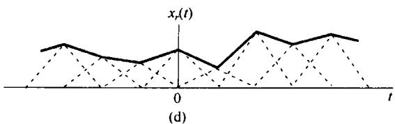按照式(7.11),在 时的重建过程如图7.10所示。图7.10(a)代表原始带限信号 图7.10(b)是样本冲激串 ,图7.10(c)则是由式(7.11)中每一项叠加的结果。