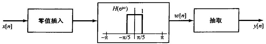 7.51 正如图 7.37 所示和 7.5.2 节所讨论的,以整数因子 内插或增采样的过程可以看成两种运算的级联。对于真正的带限内插,图 7.37 中的滤波器 是一个理想低通滤波器。但在任何实际应用中,就