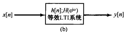 整个系统等效为一个因果离散时间线性时不变系统,如图P7.43(b)所示。