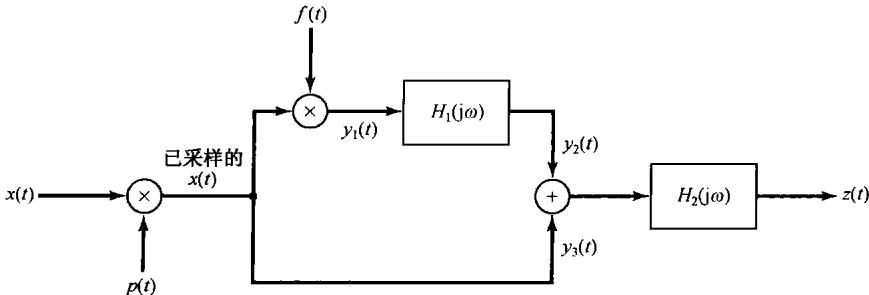 图P7.38(a)就是用来对快速变化的波形 进行采样,采样时每个周期采一次,但在相邻的下一个周期内,采样依次推迟。增量 应该是根据 的带宽而适当选择的一个采样间隔。如果让所得到的冲激串通过一个合适的低通内插滤波器,那么输出 将正比于减慢了的,或者在时间上被展宽了的原始快变化波形,即 正比于 ,其中 。