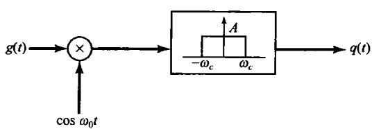 图8.8 正弦载波的幅度调制与解调。(a)调制系统;(b)解调系统。低通滤波器的截止频率 大于 而小于
