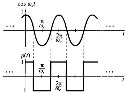 很多通信系统都建立在正弦幅度调制的基础上,在这里一个复指数信号或正弦信号 的振幅被载有信息的信号 相乘(或调制)。信号 一般称为调制信号(modulating signal),而信号 称为载波信号(carrier signal),已调信号 就是这两个信号的乘积,即