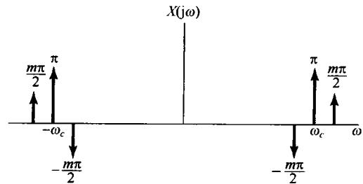 和 的频谱都示于图8.22中。正如习题8.28中所讨论的,若要保留上边带, 的相位特性就应该相反,而为