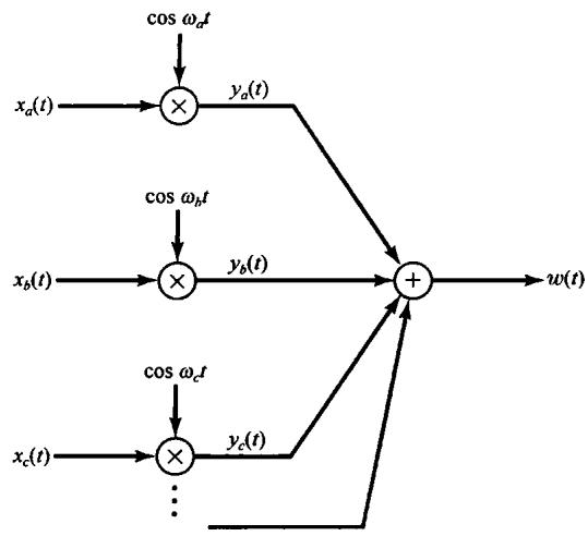 图8.15 利用正弦幅度调制的频分多路复用