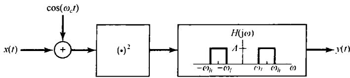 图P8.34示出了这样一个用于幅度调制的非线性系统。该系统由以下两部分组成:先将调制信号和载波相加再平方,然后通过带通滤波获得幅度已调信号。