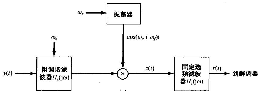 8.36 无线电与电视信号的准确解复用(解调)通常是利用一种称为超外差接收机的系统来实现的,这等效于一种可变调谐滤波器。图P8.36(a)示出了它的基本组成系统。