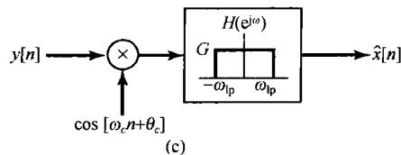 (b) 图 P8.32(c) 是一个解调系统, 对于什么样的 和 值, 将有 ? 为保证可从 中恢复出 , 有必要对 和 施加任何限制吗?