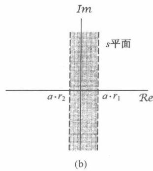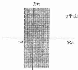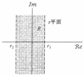 性质6 如果 是双边信号,并且 这条线位于收敛域内,那么收敛域就一定由 平面的一条带状区域组成,直线 位于带中。