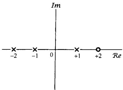 另外,虽然不一定都需要给出一个有理变换 的代数表示式,但是有时为了指明 在无限远点的极点或零点,有了代数表示式倒是较为方便的。也就是说,如果分母多项式的阶次高于分子多项式的阶次,那么 将随 趋于无穷大而变为零。相反,若分子多项式的阶次高于分母多项式的阶次,那么 将随 趋于无穷大而变成无界。这样一种特性就可以把它们看成无穷远处的零点或极点。例如,在式(9.23)中的拉普拉斯变换的分母的阶为2,而分子的阶仅为1,所以在这种情况下, 在无穷远点有一个零点。同样,在式(9.30)中的拉普拉斯变换的分子的阶为2,而分母的阶为3,在无穷远点也有一个零点。一般来说,如果分母的阶次超出分子的阶次为 次,则 在无穷远点一定有 阶零点;同理,若分子的阶次超出分母的阶次为 次,则 在无穷远点一定有 阶极点。