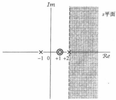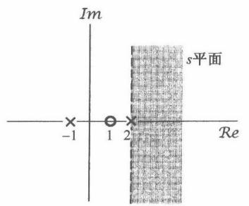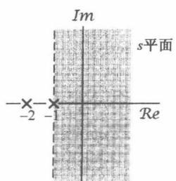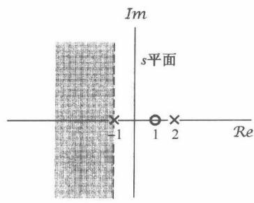 其中,这个收敛域是对 的三项拉普拉斯变换都收敛的 值的集合。该例的零-极点图及其收敛域如图9.3所示。另外,因为 的分子、分母同阶次,所以 在无穷远点既无极点,也无零点。