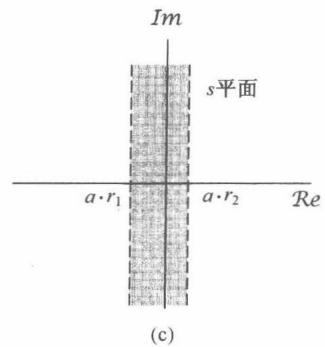 图9.10 (a) 图9.9中 的收敛域;(b) 图9.9中 的收敛域;(c) 的收敛域,这里假定(a)和(b)中的收敛域有重叠