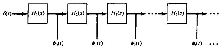 (c) 用一个单位冲激函数去激励图 P9.62 中的网络, 就可以产生信号集 。求 和 , 使得沿此级联链路的单位冲激响应正是所指出的信号 。