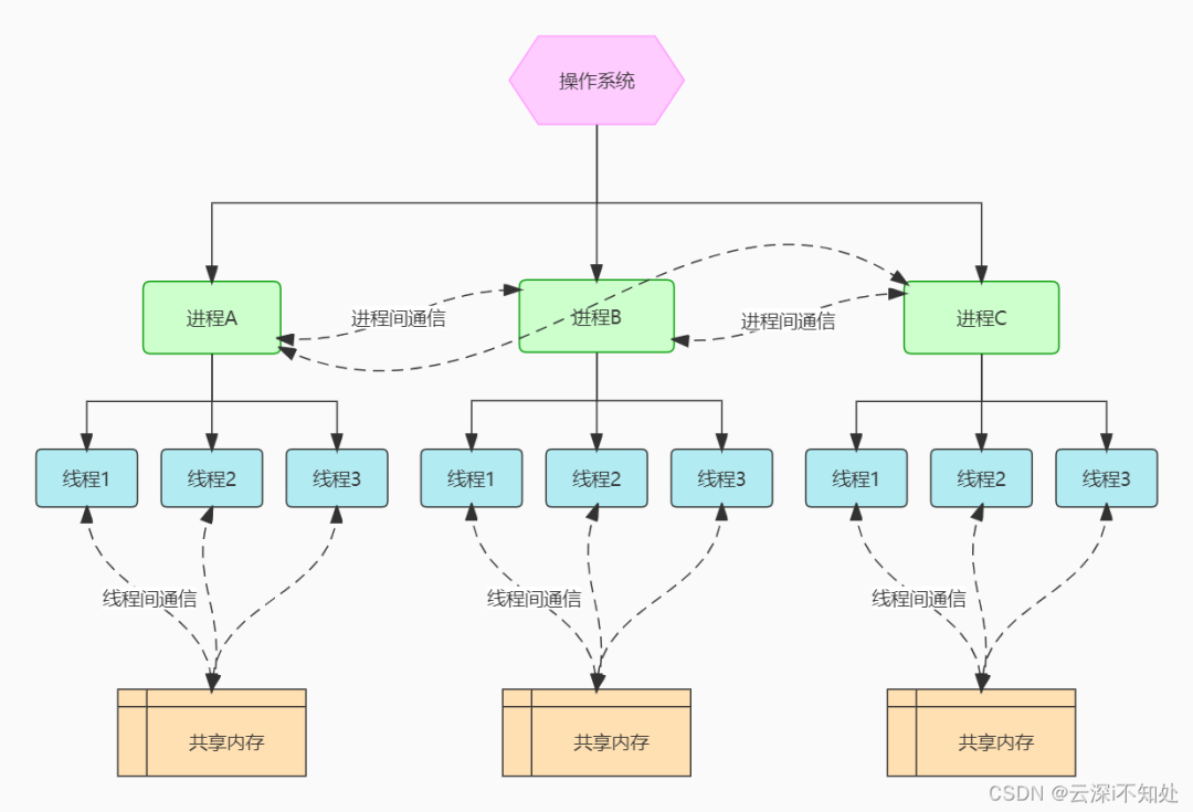 • 内核态(Kernel Mode):最高权限,可访问所有硬件和内存,运行操作系统内核代码