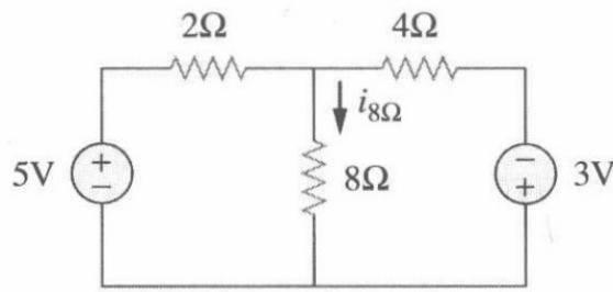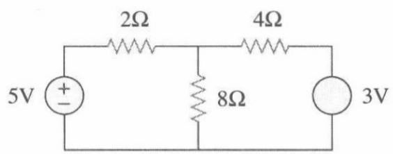 解: (V1-5)/2+V1/8+(V1+3)/4=0 (kcl)