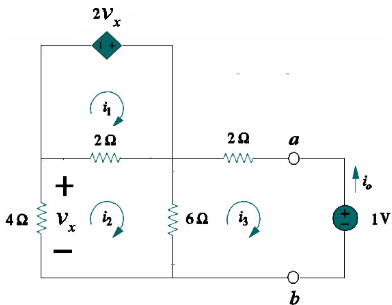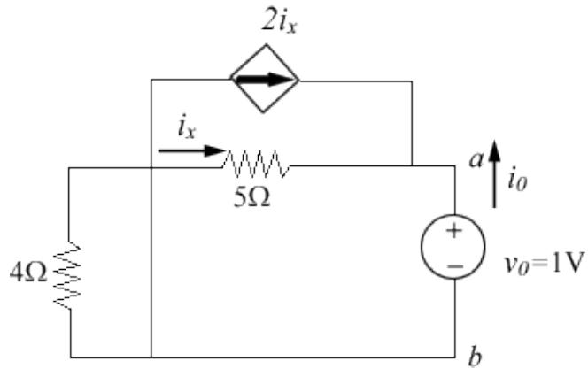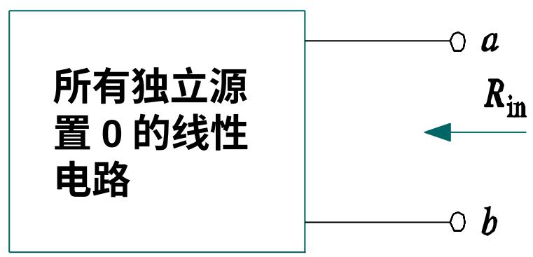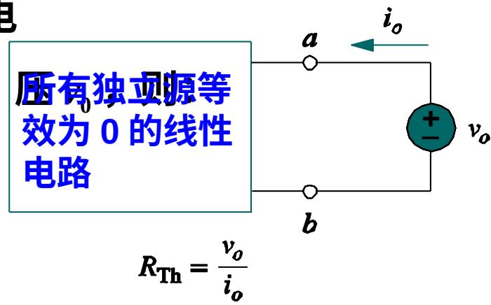 假设在ab间加1V的电压源,流出的电流为 I0,方向由b指向a,朝上。独立电压源清零,短路。