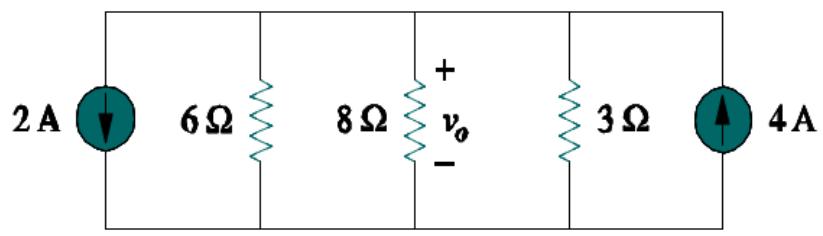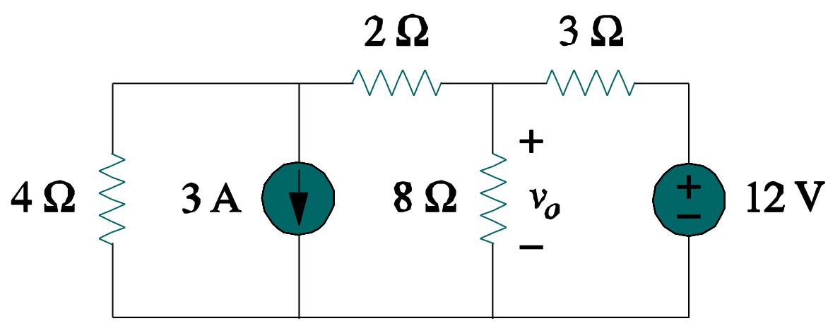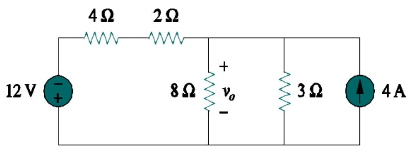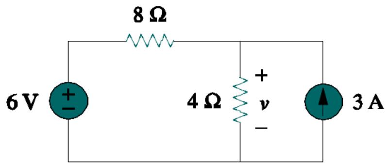 利用叠加定理求出图中电路中的 v 。解决方案 :